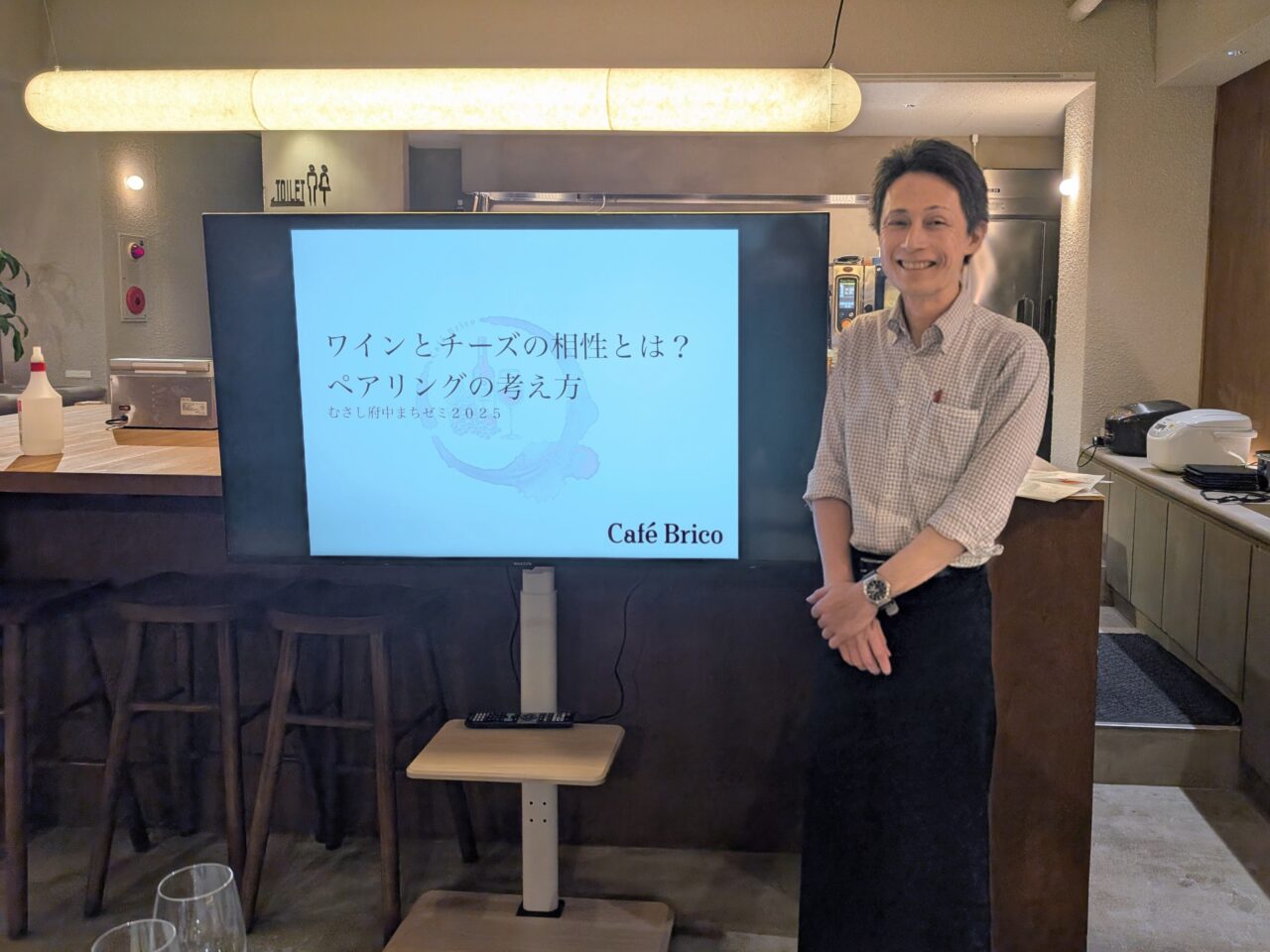 講師は、Cafe Bricoの池松さん。ソムリエ、チーズコーディネーターでもあり、フランスのワインや食文化に詳しい方です。
