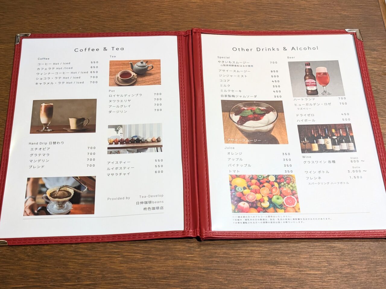 メニューも特徴的で、ランチやお酒のお供になる一品、ケーキまで揃っています。日伸珈琲beansさんの豆を使用したコーヒーやボトルワインなど、ドリンクからもこだわりがうかがえます。