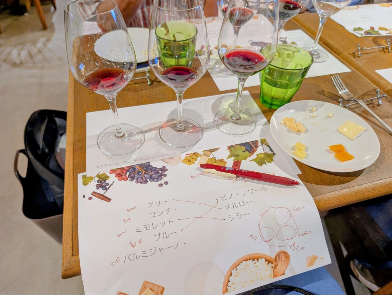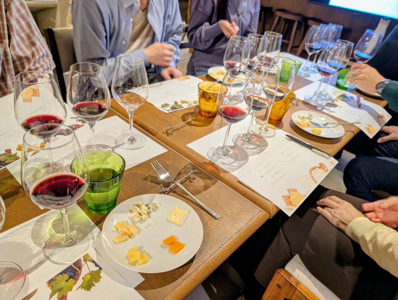 まずはワインの品質分類や、地域や畑のこと、チーズのタイプなどについて学びました。池松さんからは「ワインはブドウのポテンシャルが如実に味に現われます。フランスでは“誰が作ったか”より、“どこの畑で育ったブドウか”が大切なんです」との説明があり、ワインを通して土地の特徴を味わうという考え方に触れることができました。