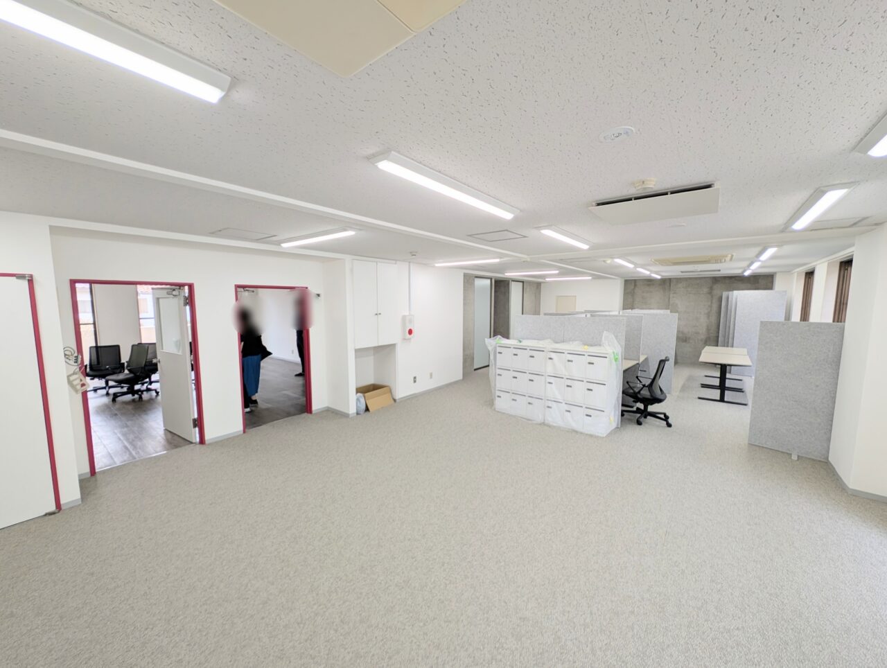 フロアにはコワーキングスペースと、シェアオフィス(個室)、イベントにも使える広めの共有スペースがあります。
