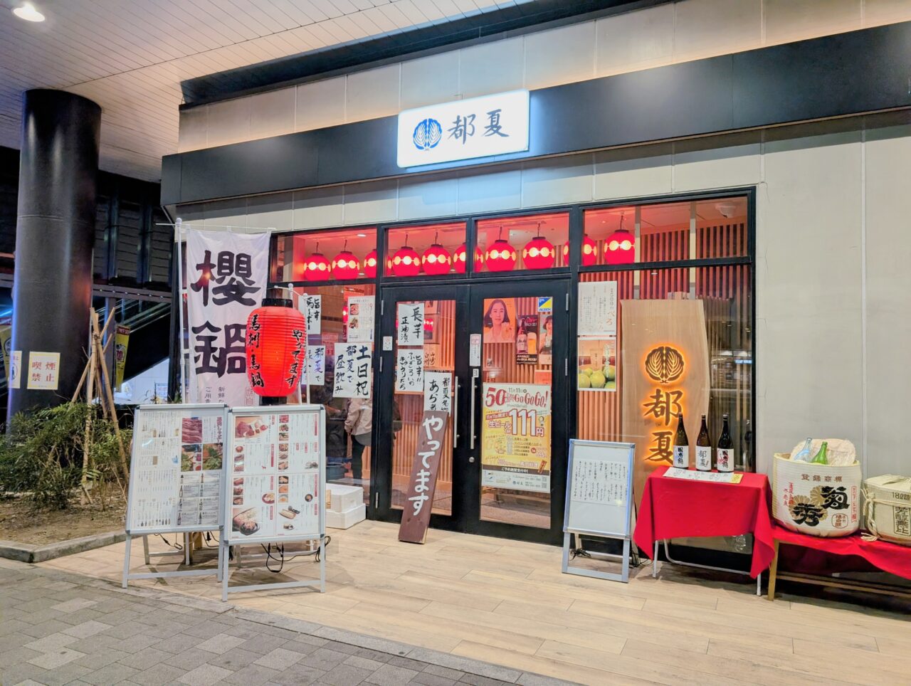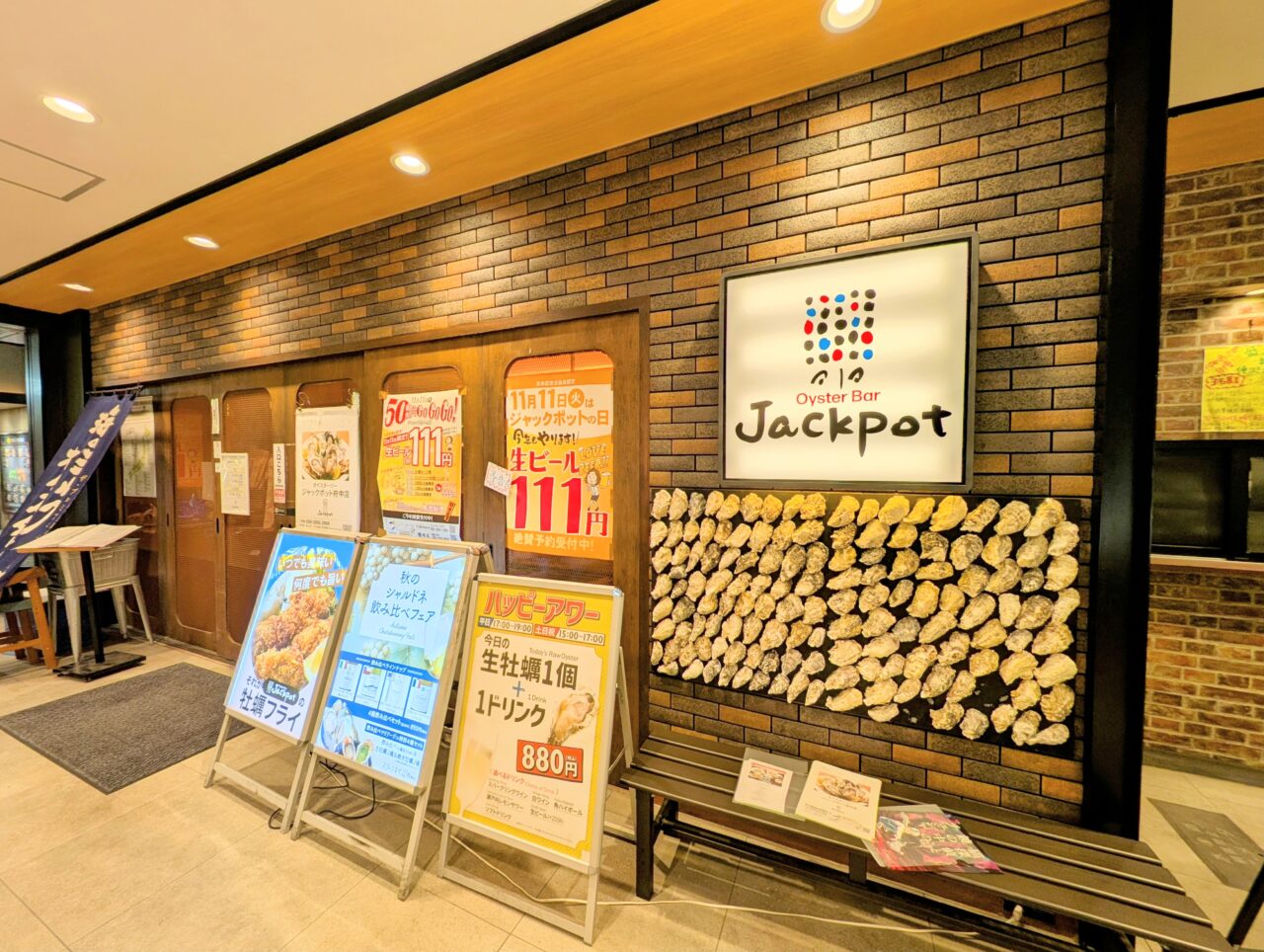 ジャックポットグループさんは府中に2店舗。いずれも府中駅直結「ぷらりと」さんに店舗を構える、「Oyster Bar ジャックポット 府中」さんと、「都夏」さんです。この2店舗で何杯目でも、該当の生ビールが111円で提供されます。