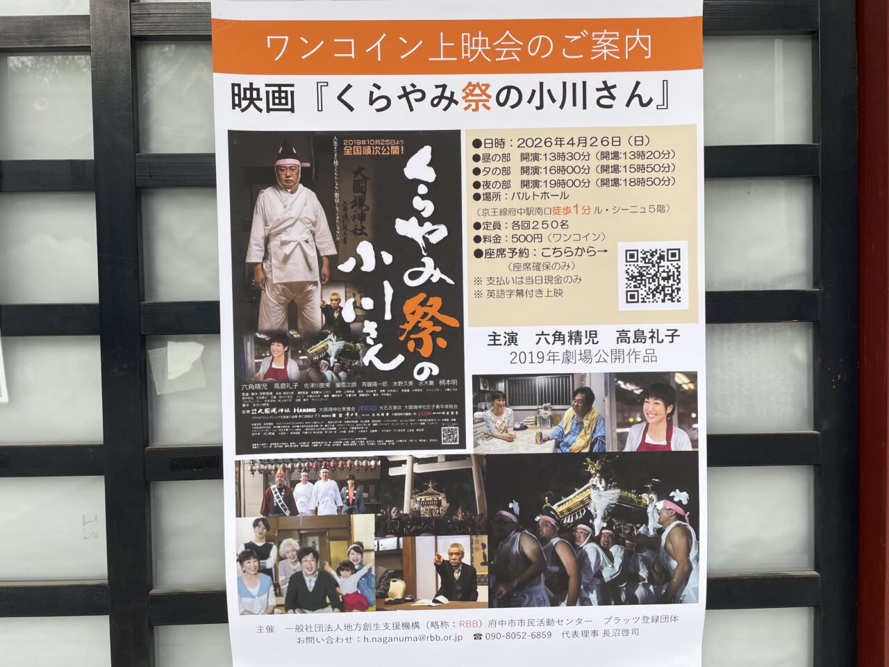 【府中市】映画「くらやみ祭の小川さん」の上映会が4/26にあります。